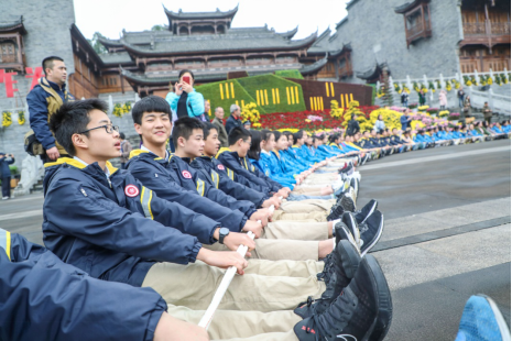 此次八中研学旅行活动中,涌现了很多感动瞬间。“自由奔跑”、“照相提示”、“共同进退”、“力挽狂澜”、“摸着石头过河”五大团队挑战中,学子们爱绿护绿、互帮互助、团结协作、奋发向上,展现了当代青年学子良好的精神面貌。主广场上“千人绳桥”拓展活动更是将此次研学旅行活动推向高潮,每个人都紧握手中的绳索,即使手被勒的通红,也没有人“拖后腿”,更没有人“掉链子”。