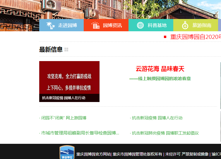 自新冠肺炎疫情发生以来,重庆园博园在狠抓疫情防控,严格实施闭园管理的同时,不断创新运用新媒体,通过网络平台将满园春色向广大市民朋友线上推送,让市民朋友居家也能感受到春天的气息。