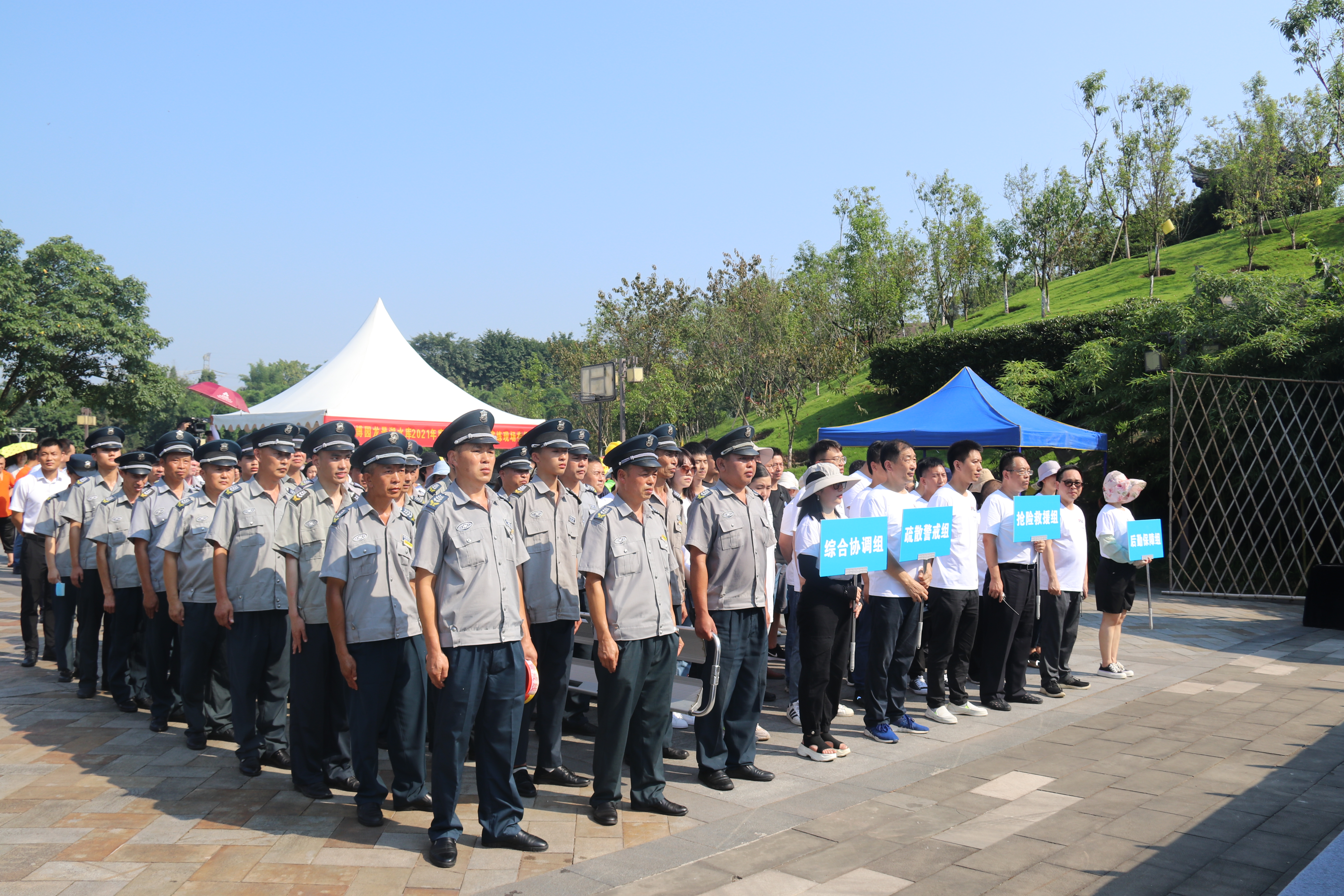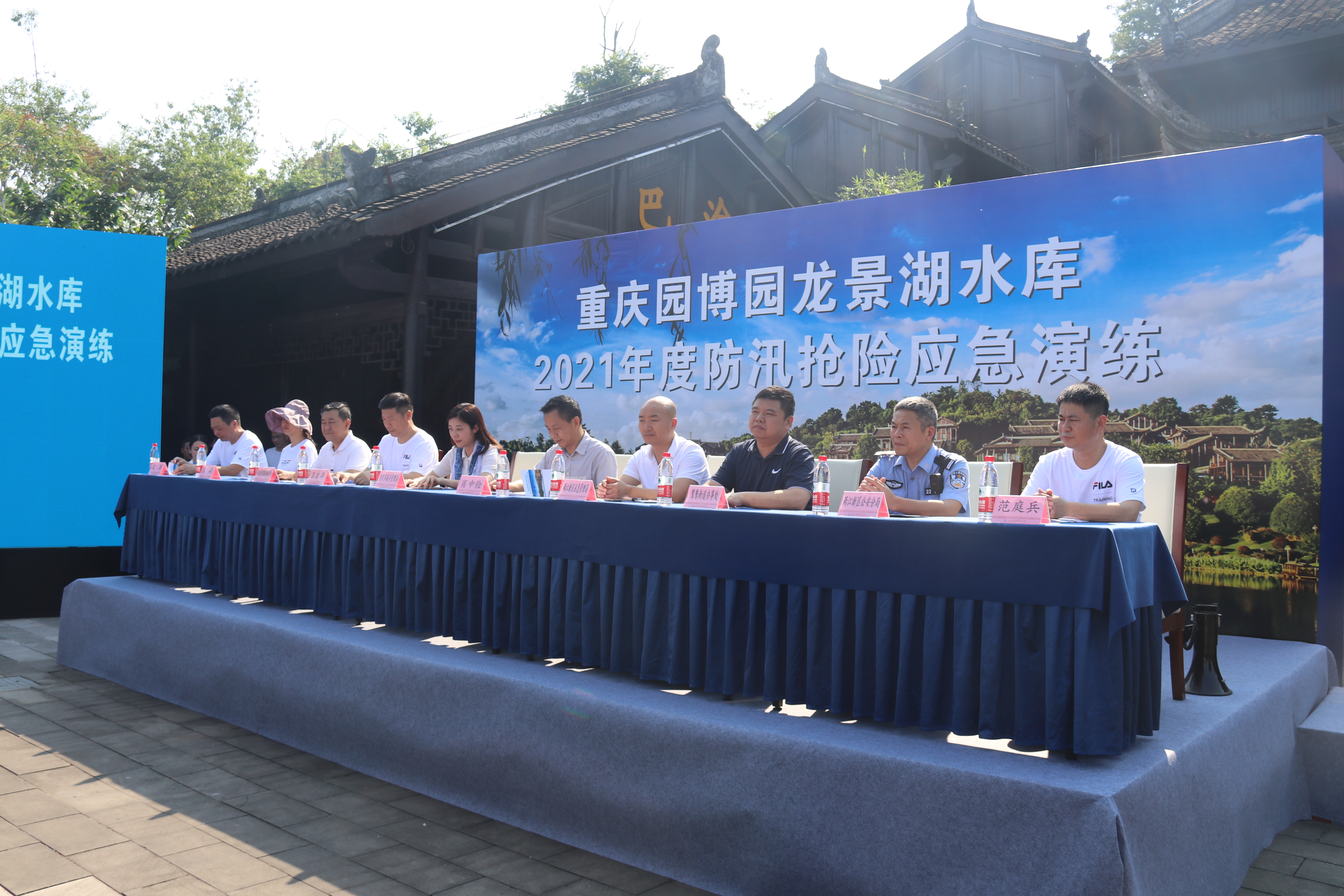 7月14日上午,重庆市园博园管理处在市城市管理局和两江新区相关部门指导下,组织全园干部职工约300人,在龙景湖畔举行2021年度龙景湖水库防汛抢险应急演练。演练紧贴当前防汛形势,从预警发布、疏散警戒、应急抢险、人员救护等方面对防汛抢险全过程进行模拟。演练活动取得良好效果。