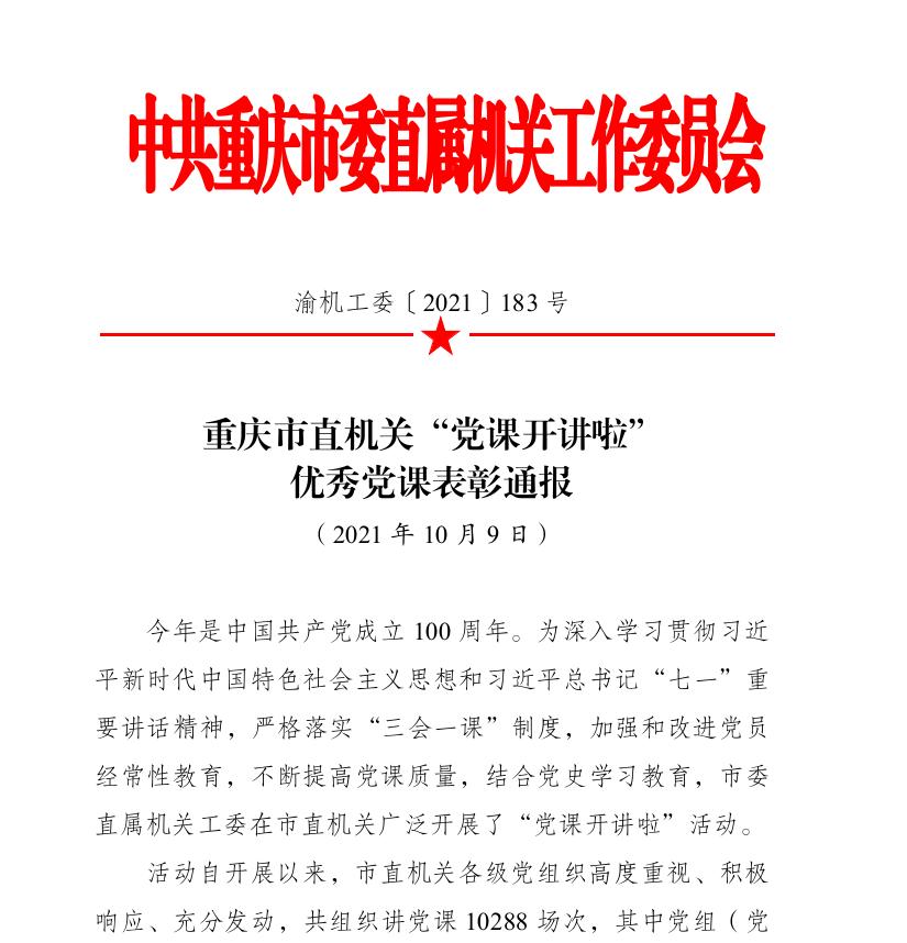 近日,重庆市直机关“党课开讲啦”优秀党课表彰暨现场展示活动在重庆雾都宾馆举行,市园博园管理处党支部书记王吉华代表市城市管理局参加此次活动,并接受表彰。
