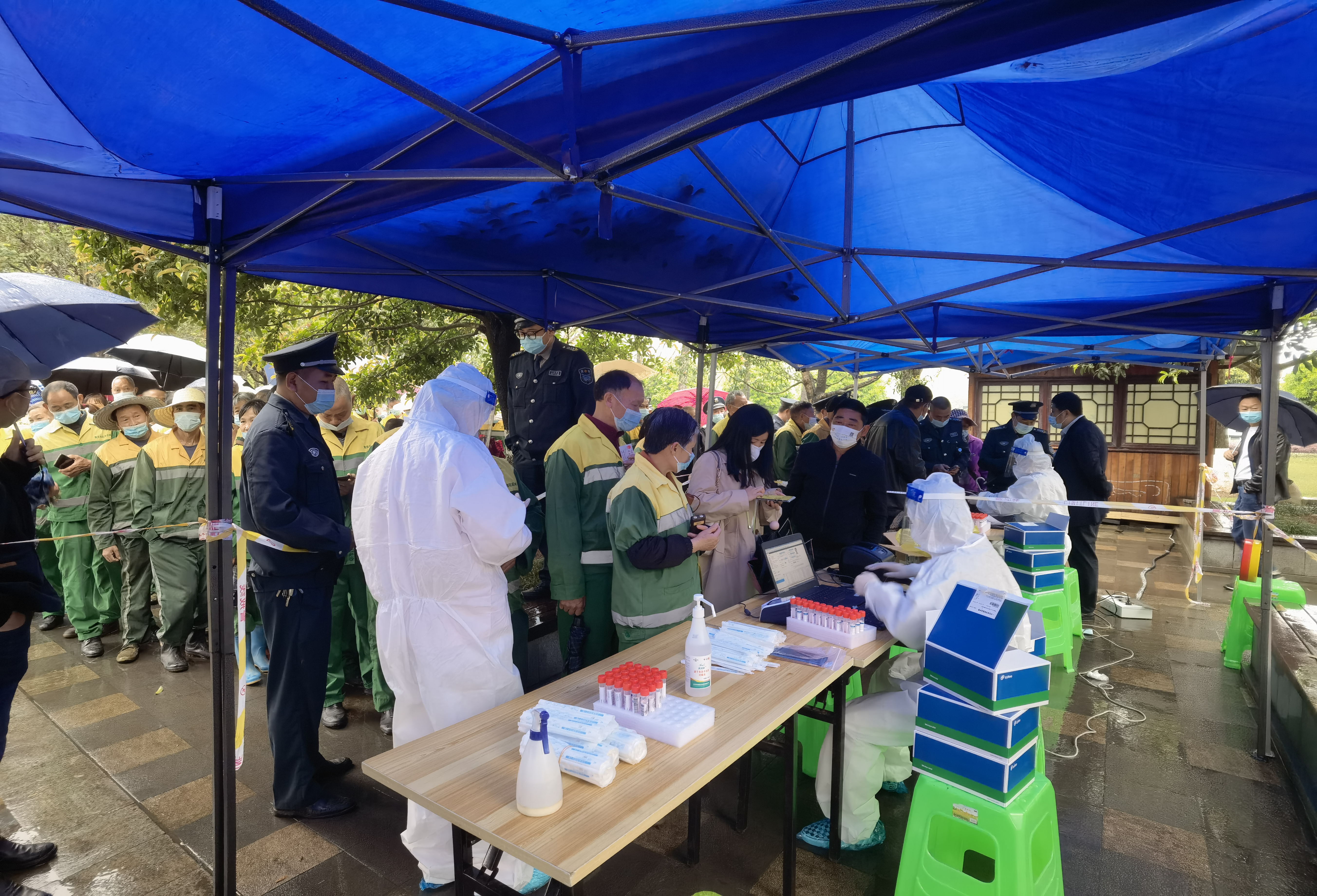 为满足“应检尽检”的采样需求,疫情防控办在主门广场设立了四个采集点,确保采样工作有序开展,采集现场工作人员耐心帮助不熟悉的绿化工人申领健康码完成采样,进一步体现出了我园的人文关怀。截止目前,全园共参与核酸检测人员共计735人次,参与检测率达到100%。