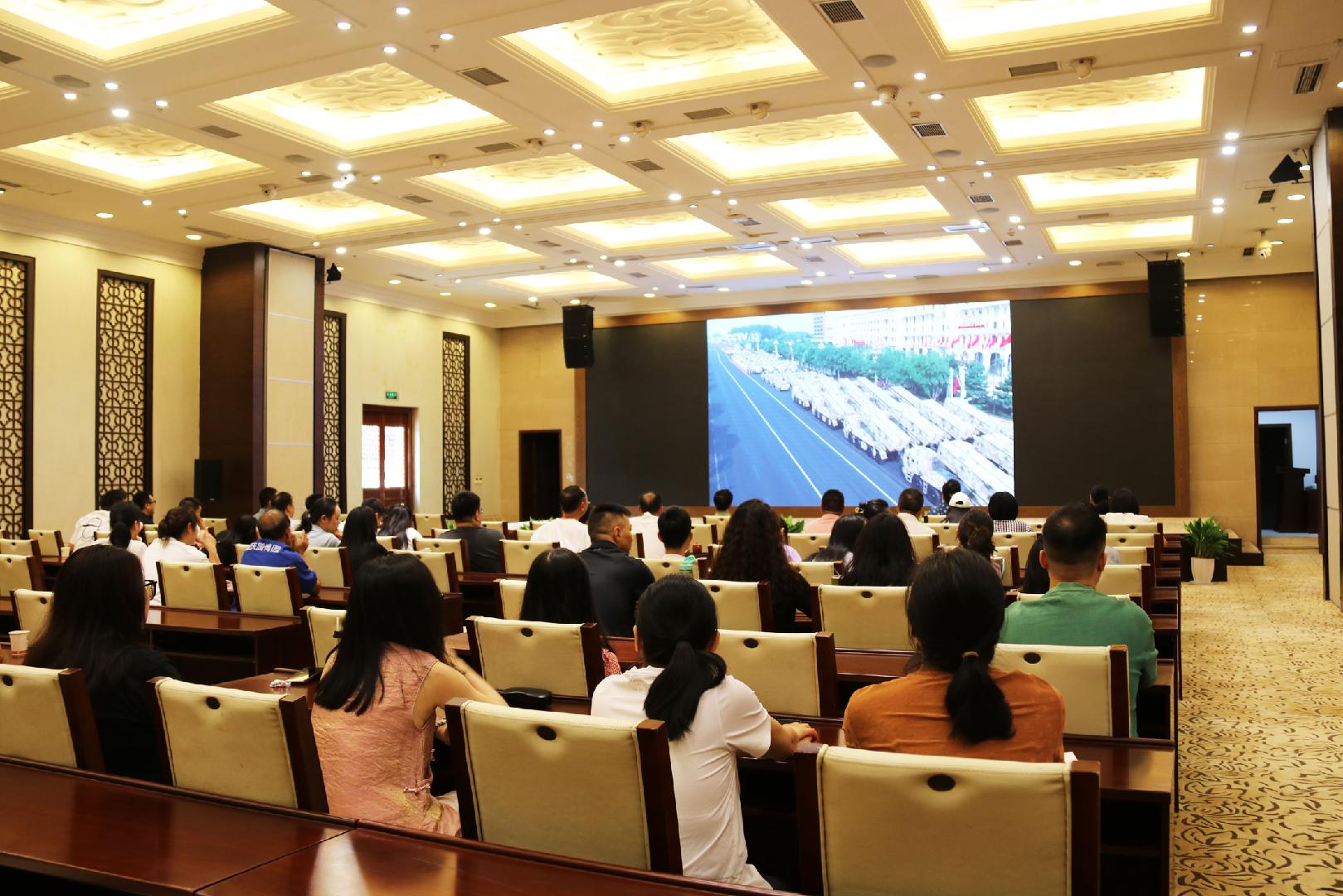 重庆园博园组织全体职工观看纪念中国人民抗日战争暨世界反法西斯战争胜利80周年大会直播盛况