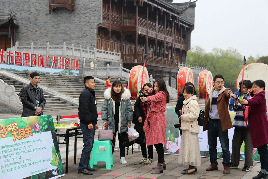 春暖花开,微风徐徐,一场以“缤纷园博、乐享春天”的赏春花游园博活动在重庆园博园拉开序幕。园博园精心为游客准备了风车艺术展、古风文化节、游园大闯关、歌舞表演等七大活动,让游客除了赏花踏青外,收获更多的游园乐趣。尤其是游园大闯关活动,以闯关得奖的形式,在主广场设置射箭、指压板跳绳、踢毽子、原地乒乓等5个小游戏,依次挑战成功后可领取多肉小盆栽一份。游园闯关吸引了包括小朋友在内的大批游客前来参与,获得了游客朋友的一致好评。