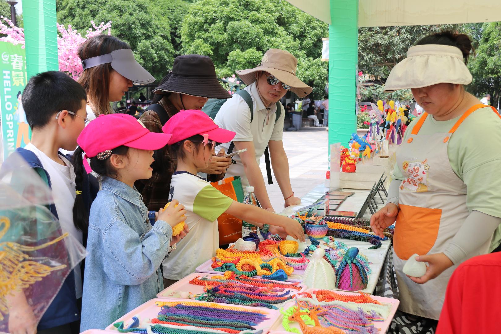 一是活动精彩人气旺。五一节期间,重庆园博园每天在露天剧场为市民游客带来歌舞表演,川剧变脸、魔术等精彩节目;主广场上为游客朋友备好各种美食,酸辣粉、小面、小汤圆、冰粉……游客可以在这里体验舌尖上的多种美味;文创非遗集市汇集了剪纸、彩编、糖画、棉花糖、吹糖人等传统技艺,精美汉服、文创产品和非遗手工艺品,为游客带来一道精美的“视觉大餐”。二是亲子互动欢乐无限。同时还有“寻趣春日 童梦乐园”和“恐龙知识大比拼”亲子活动备受游客青睐,游客们积极参与弹珠、蹦床等趣味游戏,与恐龙拍照留影,抽取限量盲盒更是让大小朋友直呼过瘾,让游客们在趣味游戏中感受到了古生物学的神奇魅力。三是万株月季花醉游人。五一节期间,北方园林展区月季花开正艳,成为游客拍照打卡热门地。游客漫步花间小径,聆听花开的声音,感受到了初夏的浪漫与诗意。