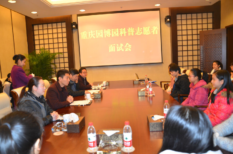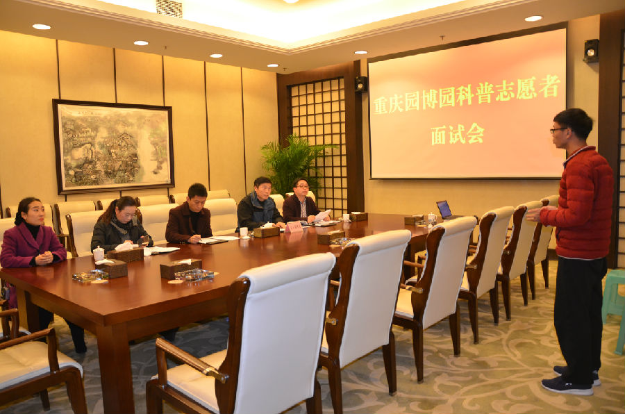 为广纳科普人才,推动单位的科普建设,12月18日下午,重庆园博园在一楼举办了科普志愿者面试会,管理处科技工作领导小组组长、党支部书记王吉华同志带领相关人员组成面试小组,对来自西南大学等高校的34名科普爱好者逐一筛选考核,最终30名学生被以录用。