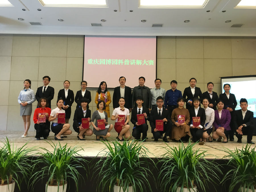 本次大赛旨在为即将举办的重庆市第四届科普讲解大赛选拔人才,同时也为《重庆园博园127个国内外城市园林展园的人文掌故》科普课题作了一次宣讲。本次比赛分1分钟视频展播和比赛两个环节,共有19名选手参加。他们分别是来自西南大学、重庆文理学院、重庆师范大学、重庆工商大学的科普志愿者及园博园的专职讲解员。讲解内容涉及园博园城市展园、巴渝吊脚楼、植物等科普知识,内容丰富。选手通过一分钟视频风采展示、现场生动流畅地科普讲解向评委和观众展示了自己的专业素养和综合技能。在由重庆师范大学地理与旅游学院学生工作办公室陈洪伟主任、重庆市科委科普宣教处的余林林副处长、重庆园博园党支部书记王吉华、副主任张莉及范庭兵组成的专家评委的综合评定下,杨昆、刘锦、张健锋等9人胜出,分别获得一、二、三等奖。
