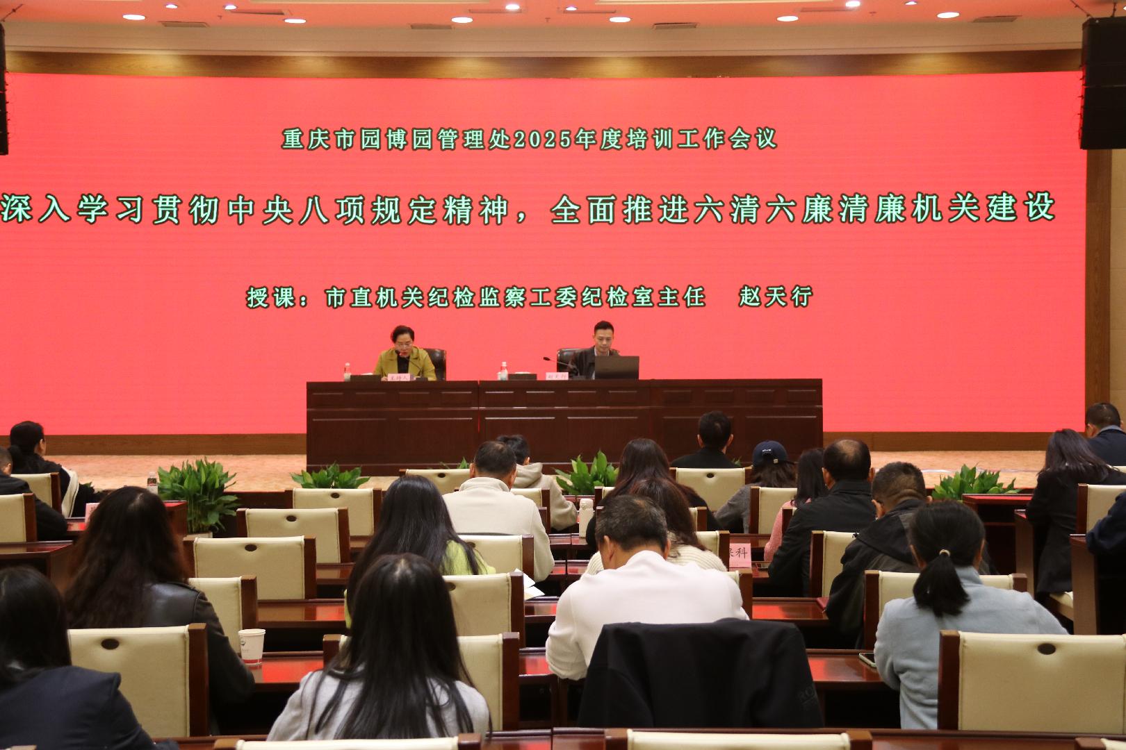 10月31日上午,为推进廉政建设与作风建设,推动深入贯彻中央八项规定精神教育走深走实,市园博园管理处邀请到市直机关纪检监察工委纪检监察室赵天行主任开展“深入学习贯彻中央八项规定精神,全面推进六清六廉清廉机关建设”专题授课,全园干部职工参加了学习。
